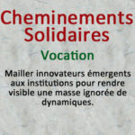 CHEMINEMENTS-SOLIDAIRES a pour objet de détecter les innovations en économie sociale et solidaire, de les rendre lisibles et visibles par des participations à des recherches et par le développement de leur mise en réseau. Mailler innovateurs émergents aux institutions pour rendre visible une masse ignorée de dynamiques.